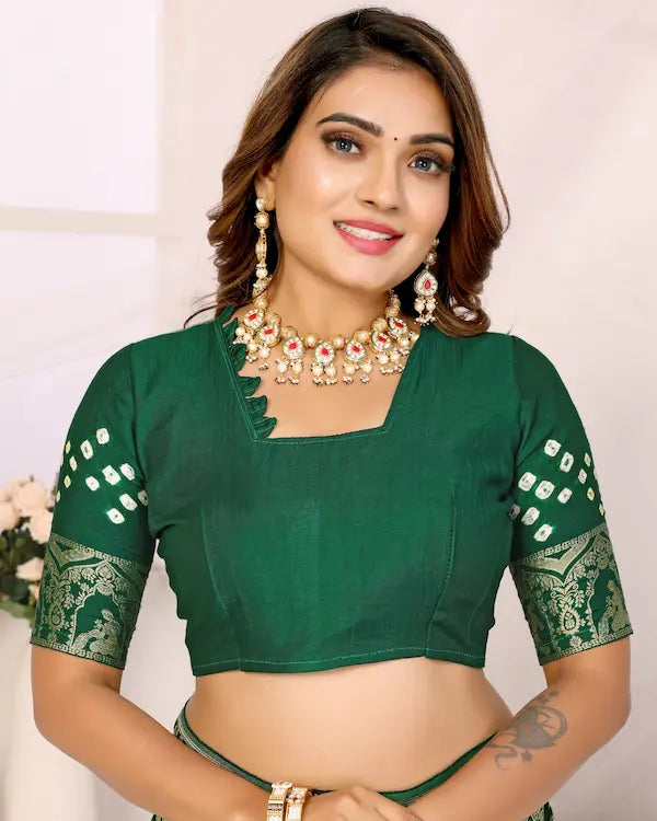 ✨ Regal goldwork and Bandhej in vibrant mehndi green