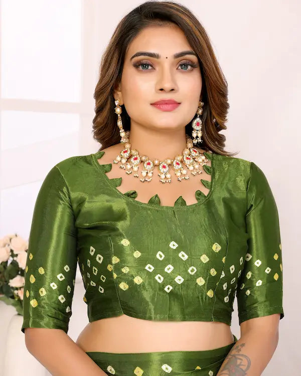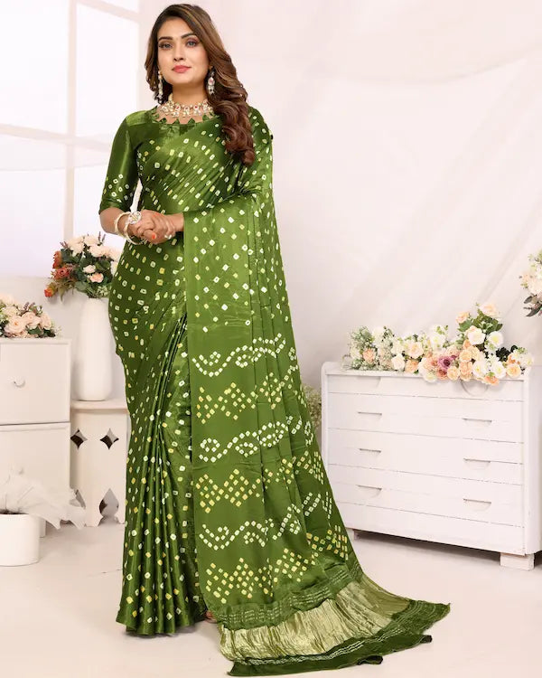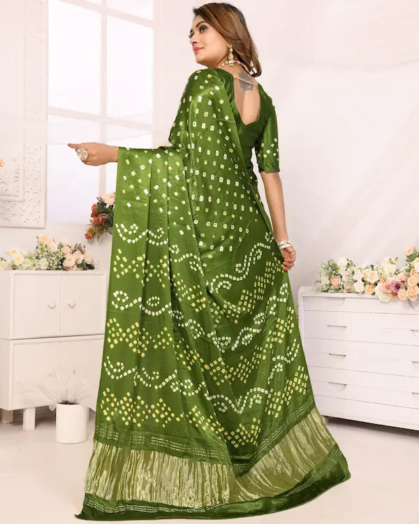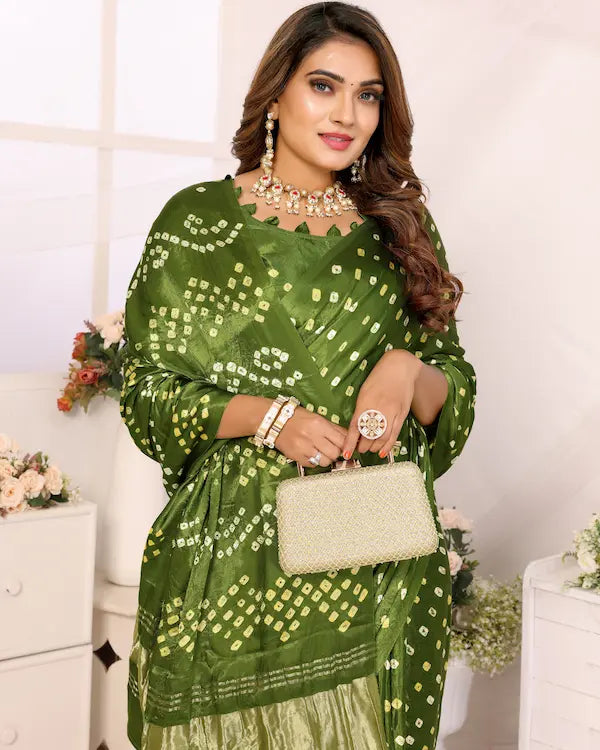 Mehndi Melody Green Bandhani Saree with Subtle Pallu | Gaji Silk Fabric