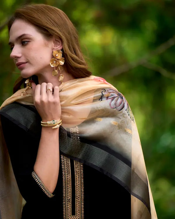 ✅ Organza Jacquard Dupatta — Sheer florals add romantic drama