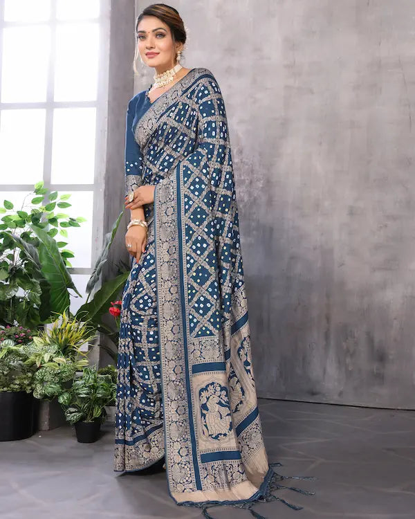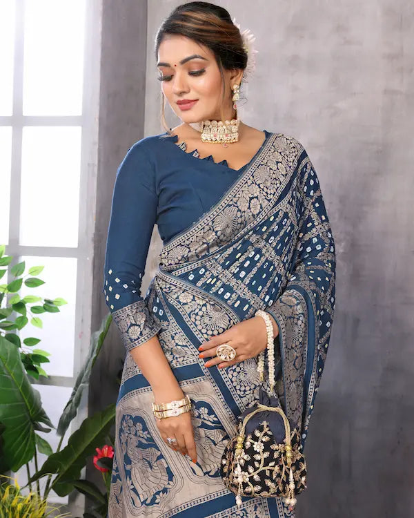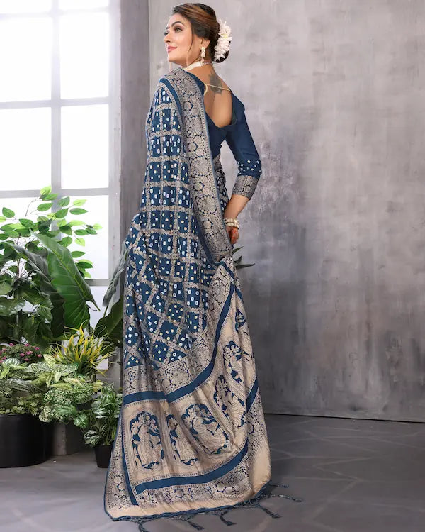 Midnight Raas Blue Bandhani Saree with Dandiya Pallu | Misco Gaji Fabric