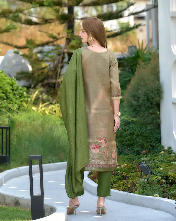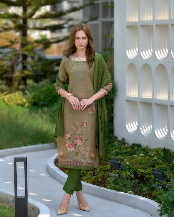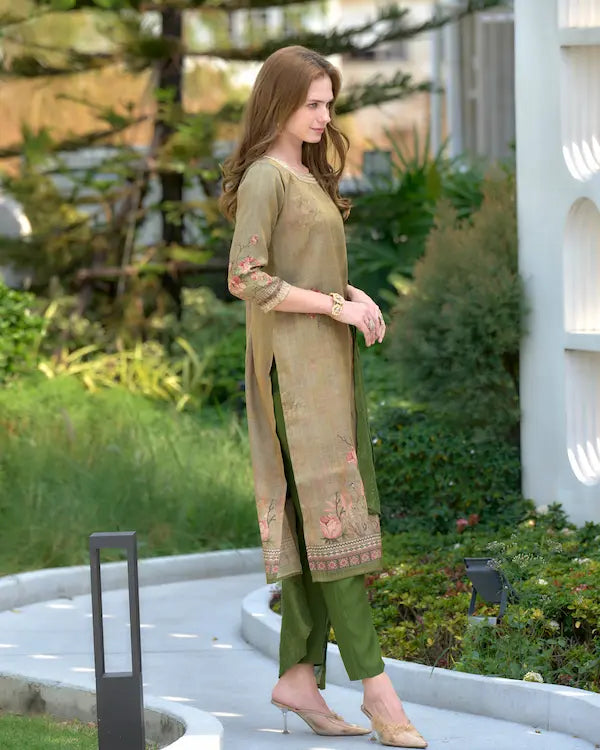 Step into botanical beauty with Moss Mirage — a timeless 3-piece kurti set that blends earthy sophistication with delicate floral embroidery and a breezy tissue finish. Whether it’s a festive brunch or a moonlit celebration, this ensemble brings effortless elegance and lasting impressions.