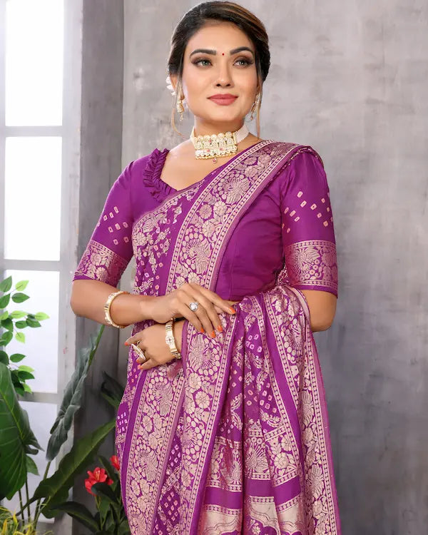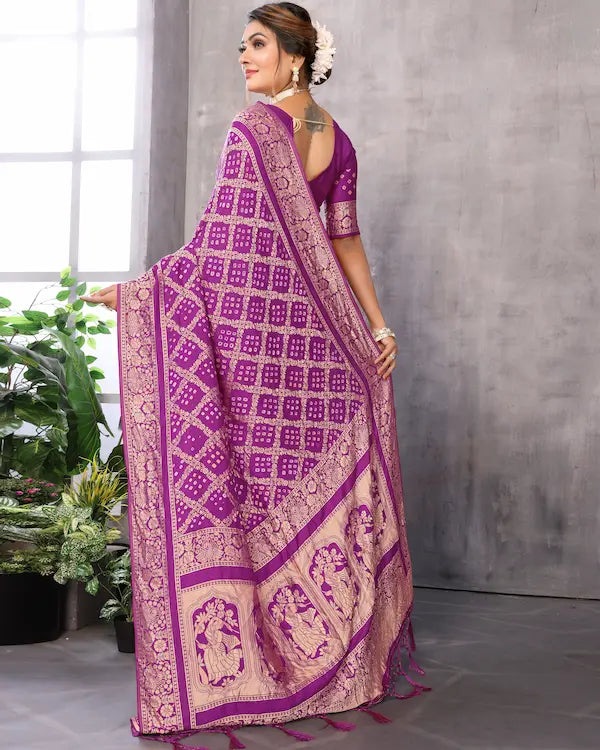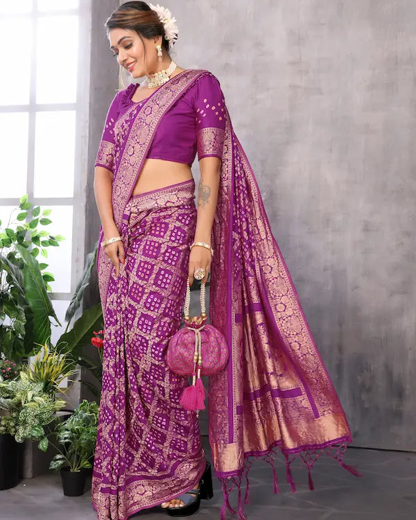 Plum Raas Purple Bandhani Saree with Dandiya Pallu | Misco Gaji Fabric